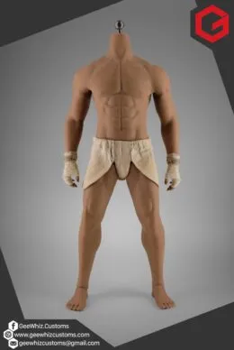 This commissioned 1:6 scale traditional Muay Thai loincloth recreates the minimalist fight attire worn by Kurt Sloane during that legendary scene. Tailored in soft beige fabric, the piece features a short wrap-style design with front and rear panels that drape naturally over the figure while allowing for wide fighting stances. The proportions have been carefully adjusted to complement a muscular seamless 1:6 scale body while preserving the authentic silhouette seen in the film.
